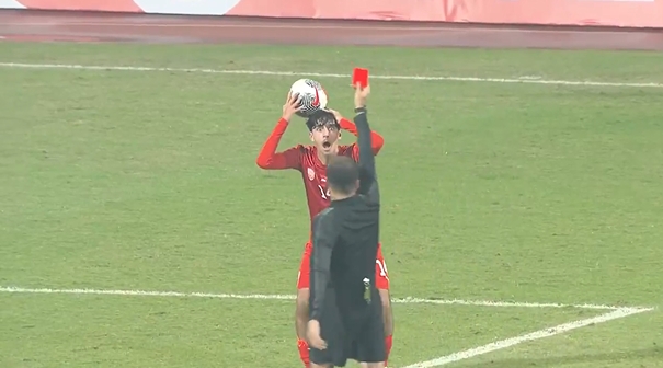 邝兆镭造直红!邝兆镭抢断后被放倒造敌手红牌,U16国足多打一东说念主