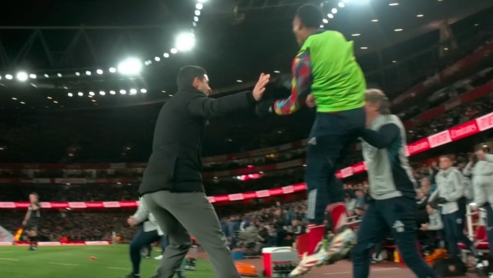 真枪手!阿森纳4-1时替补席斯凯利汗漫庆祝,与老师组情绪相拥