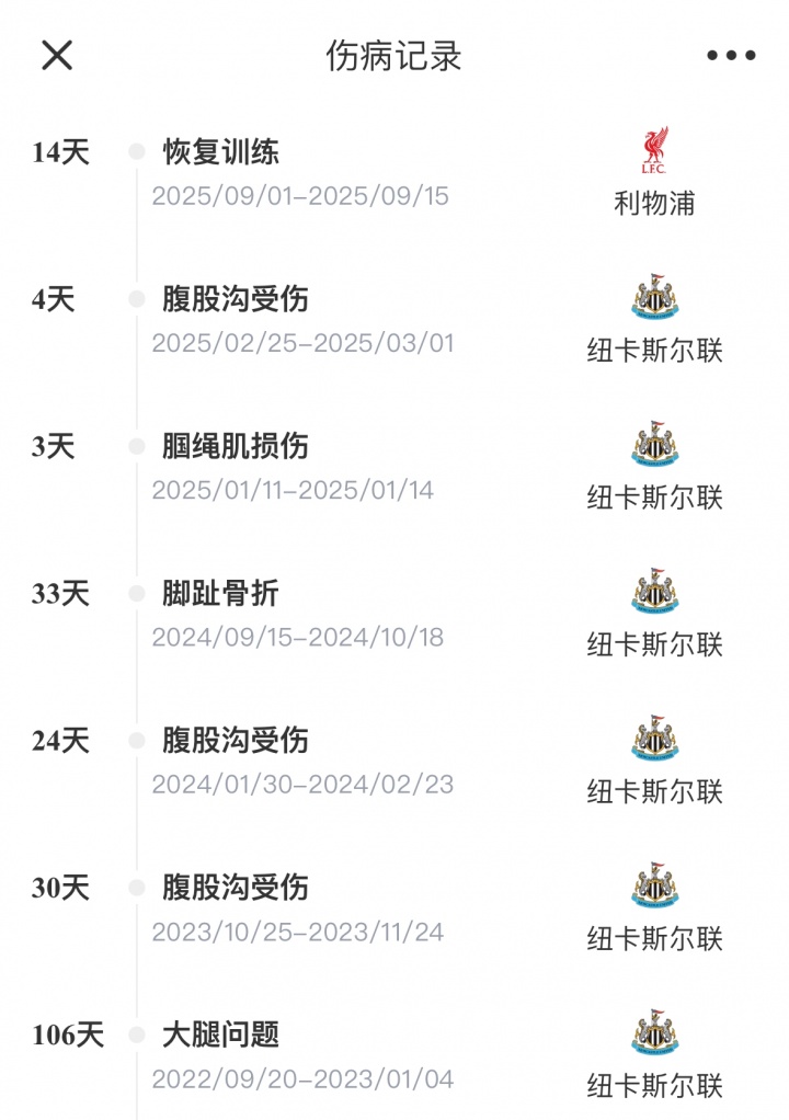 伊萨克此前曾3次遇到腹股沟伤情↓