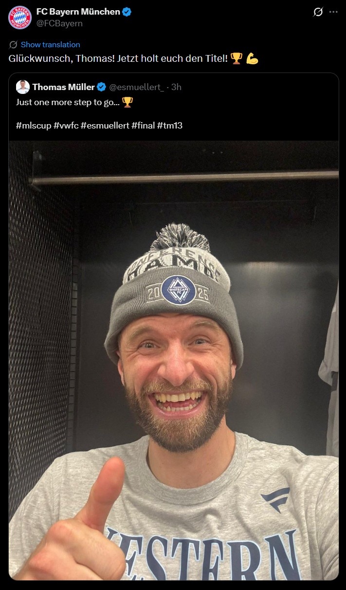拜仁祝贺穆勒参预好意思职联总决赛:当今去拿下冠军吧!🏆💪