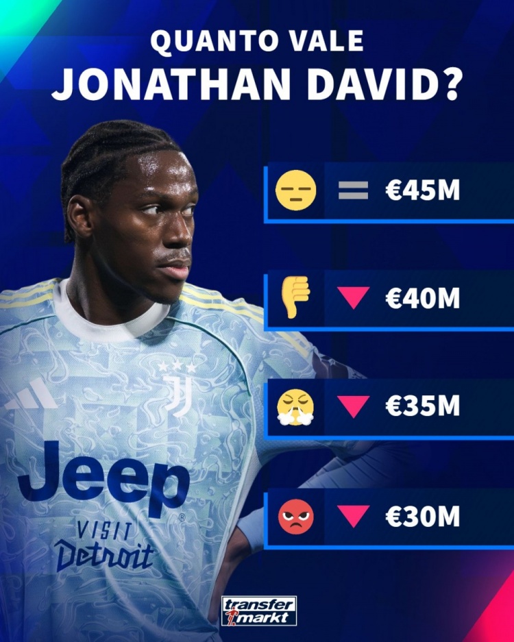 德转预热戴维身价变化:最高保抓4500万欧,最低降至3000万欧