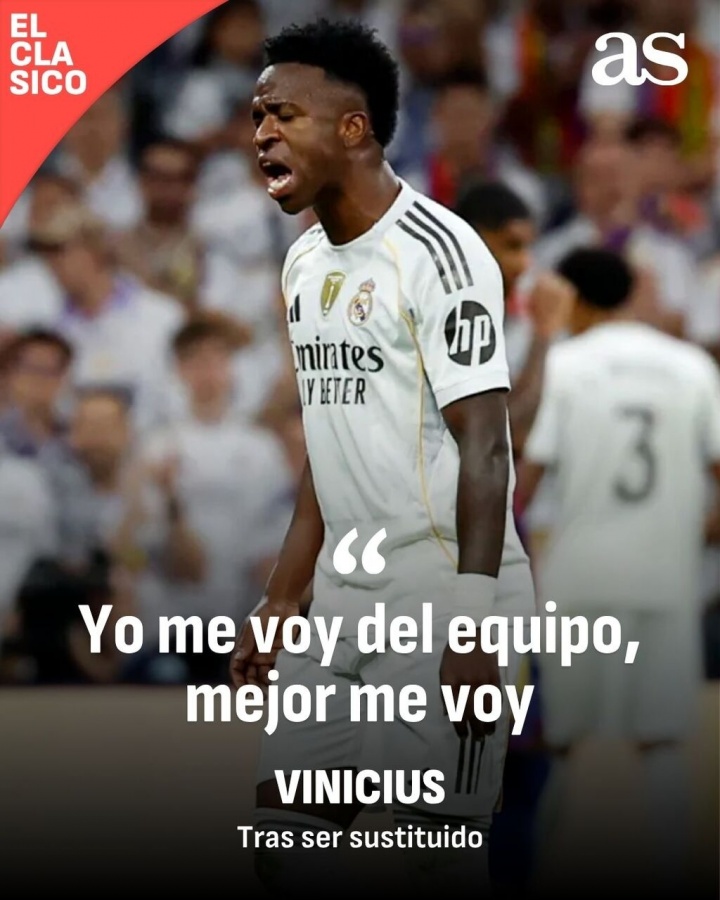10月27日讯 本轮西甲,皇马主场2-1投诚巴塞罗那,比赛中维尼修斯被换下时极度愤怒,阿斯报报说念了那时的情形。
