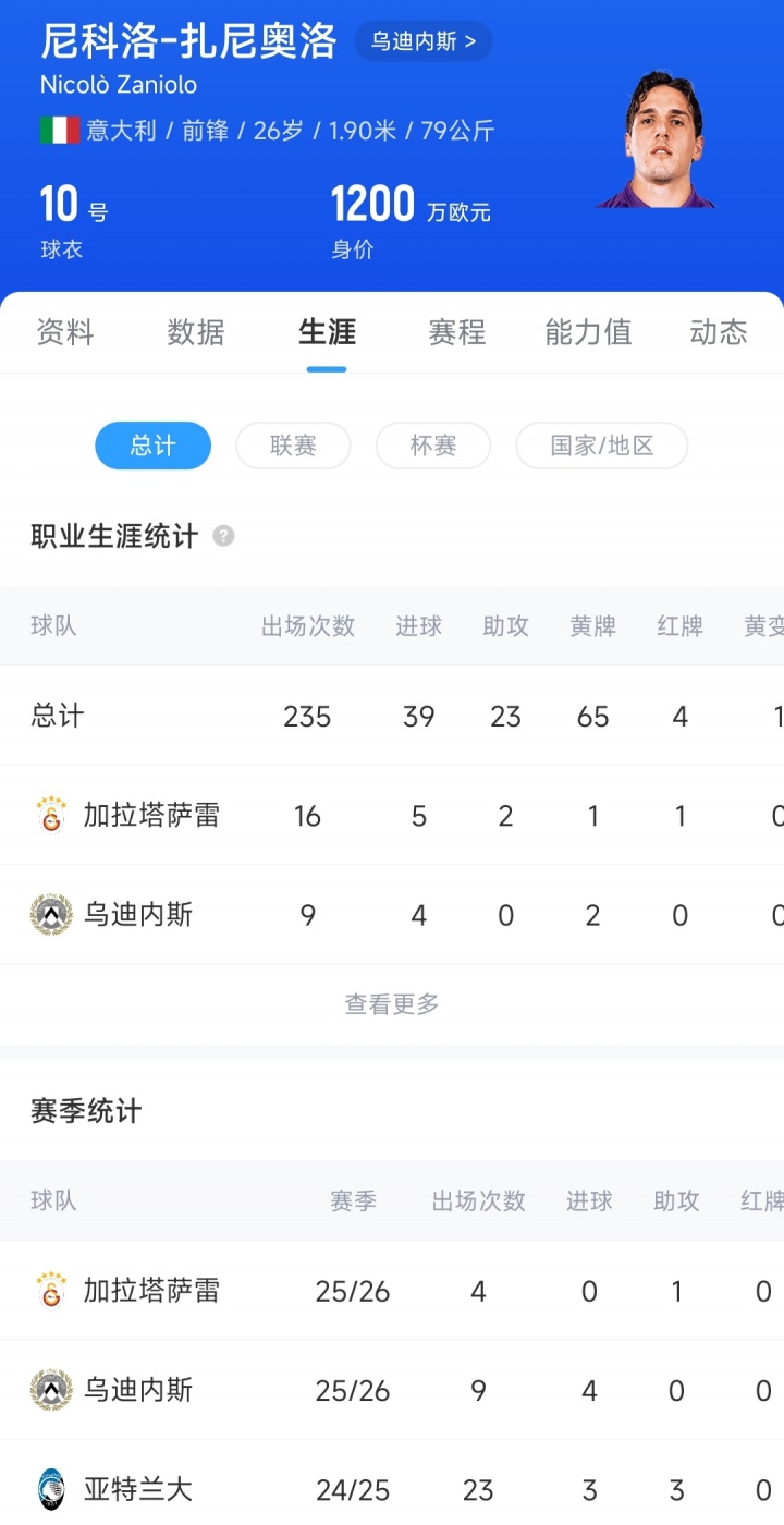 本年夏窗扎尼奥洛从加拉塔萨雷租赁加盟乌迪内斯,赛季于今代表球队出战9场比赛,打进4球,还是刷新了个东谈主近3个赛季最多的单赛季进球数。
