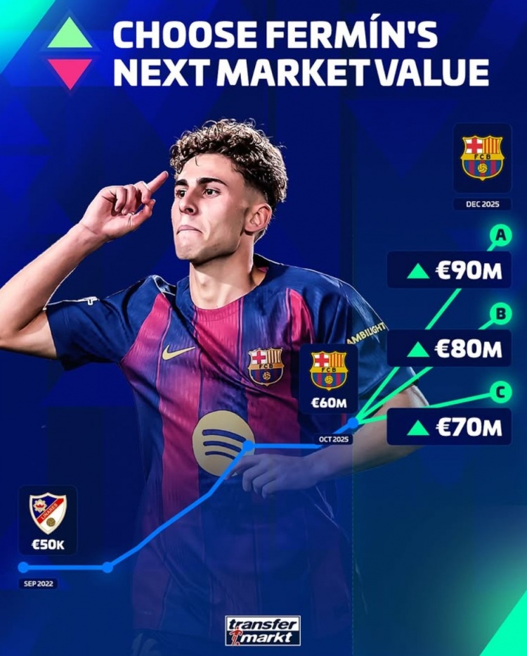 22岁费尔明本赛季13场7球4助!德转预热身价高涨:最高可达9千万
