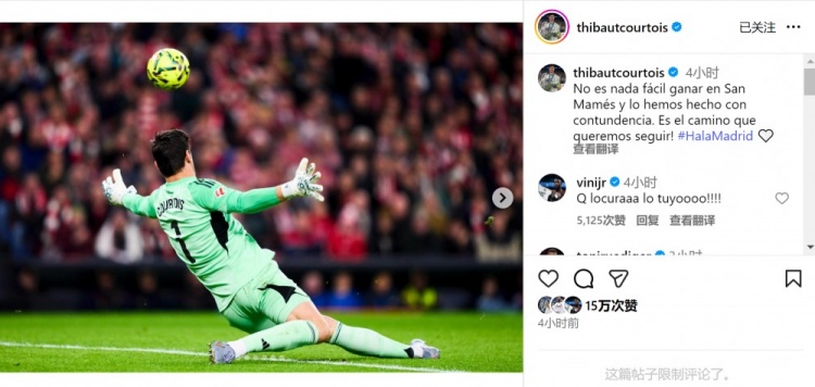 库尔图瓦社媒晒出扑救相片,配文:“在圣马梅斯取胜绝非易事,而咱们今天取得干脆利落。这恰是咱们念念要连接前进的说念路!”