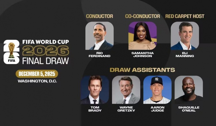2026年天下杯抽签典礼将于2025年12月5日在华盛顿特区约翰·F·肯尼迪扮演艺术中心举行。