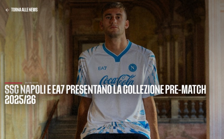 8月31日讯 那不勒斯与EA7发布了2025-26赛季新款赛前覆按服,这款球衣已在北京时辰今天凌晨对阵卡利亚里的比赛中初次亮相,这是本赛季那不勒斯在马拉多纳球场的首场认真比赛。