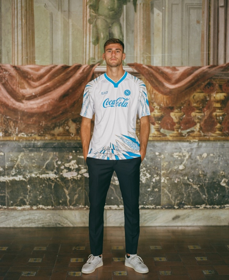 此球衣的发布照亦然在波蒂奇皇宫拍摄,该宫殿由卡洛斯三世于1738年缔造,曾是宫廷的夏日居所,是十八世纪波旁王朝的一颗明珠,面向维苏威火山和大海。