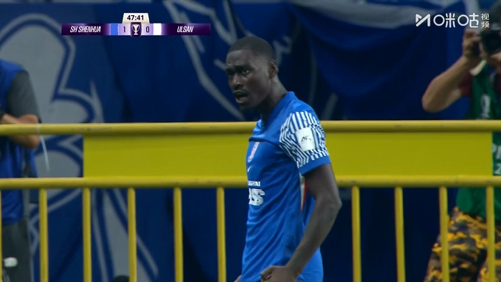 10月01日讯 亚冠精英联赛东亚区第2轮,上海申花vs蔚山HD。比赛第48分钟,阿苏埃破门,申花1-0向上。