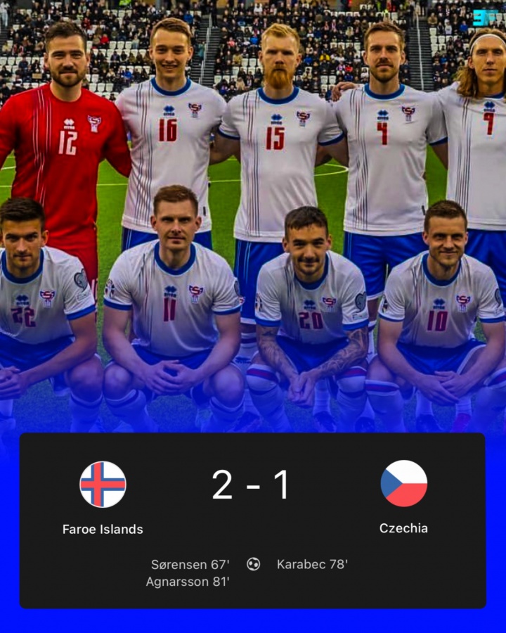 世初赛欧洲区小组赛,宇宙名挨次136的法罗群岛在主场以2-1的比分爆冷驯顺宇宙第39的捷克。