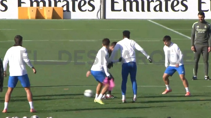11月25日讯 皇马欧冠赛前覆按,阿隆索加入球队抢圈游戏。