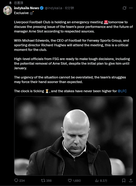 “芬威高层依然作念好准备,将作念出机要决定,包括有可能提前打消斯洛特的主考验职务——尽管原贪图是要让他撑到1月份。