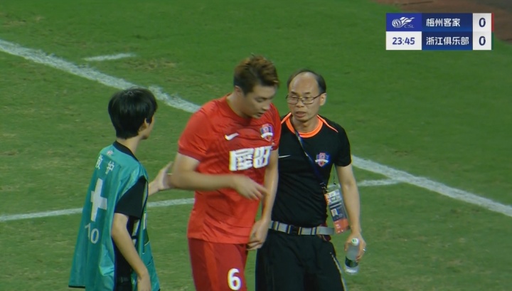 比赛第23分钟,此前就有受伤情况的梅州场上队长廖均健再次倒地默示无法坚执比赛,随后他被杨瑞琦换下。