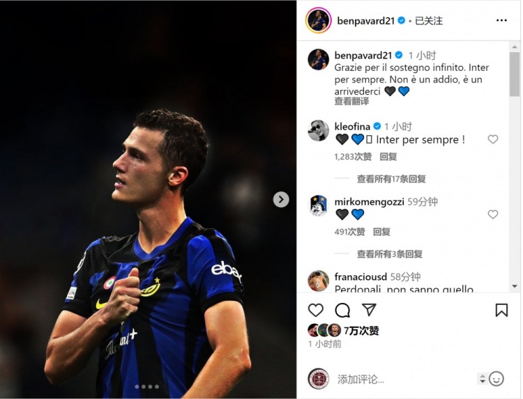 帕瓦尔社媒晒竖立穿国米球衣的像片,并配文:“感谢你们无穷的相沿。耐久的国米。这不是告别,而是后会有期。”