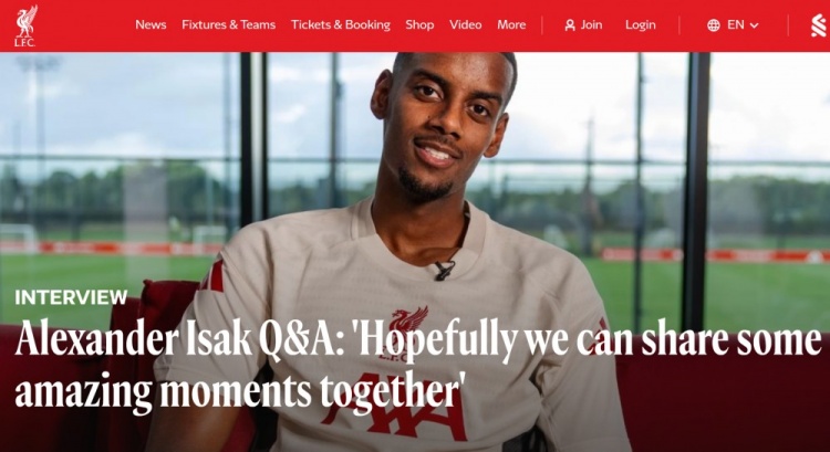 9月2日讯 利物浦依然官宣引进纽卡中锋伊萨克,后者也收受了俱乐部官网的问答采访。