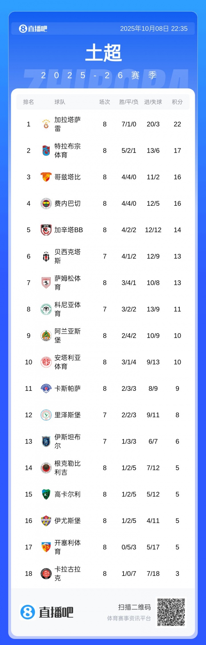 至此,土超新赛季开赛8轮,一经有6位主帅被球队衔命,其中包括一经转而握教本菲卡的穆里尼奥。