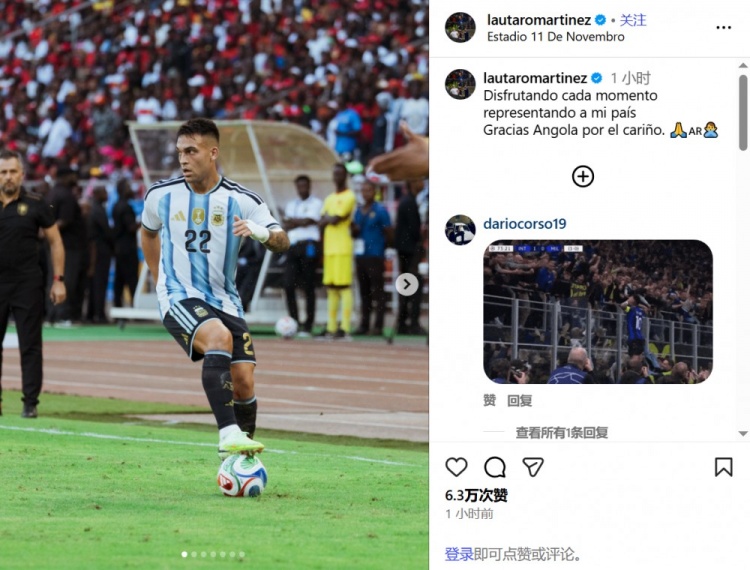 劳塔罗晒出在比赛中的像片,并配文写谈:“代表故国出战的每一刻齐让我无比享受,感谢安哥拉球迷的爱。”