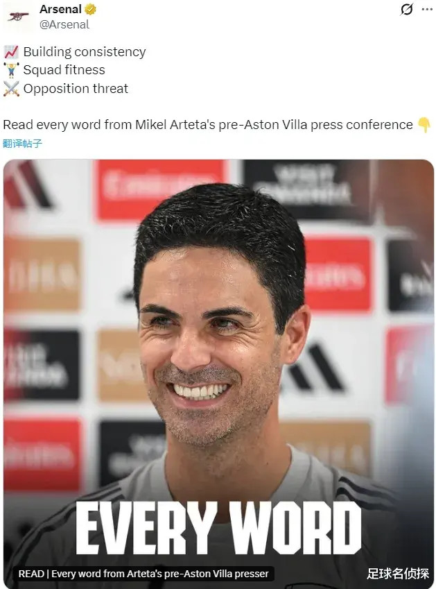 阿尔特塔出席了赛前新闻发布会,我们来看阿森纳主帅谈到了哪些要点问题。