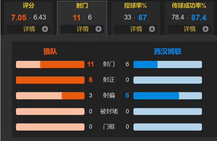 再看比赛数据,概况努诺照旧难逃本赛季在英超第二次下课的红运,概况铁锤帮更衣室念念要作念掉努诺。全场比赛,狼队的控球率仅为33%,但一共有11次射门,其中多达8次射正;西汉姆联一共仅有6次射正,靠近英超副班长居然0射正,这即是全队的背负了,概况西汉姆联也闻到了左迁的滋味!
