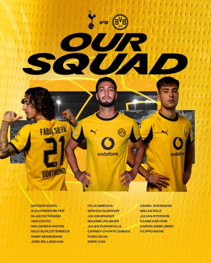 多特欧冠客战热刺名单: 吉拉西、阿德耶米、布兰特在列