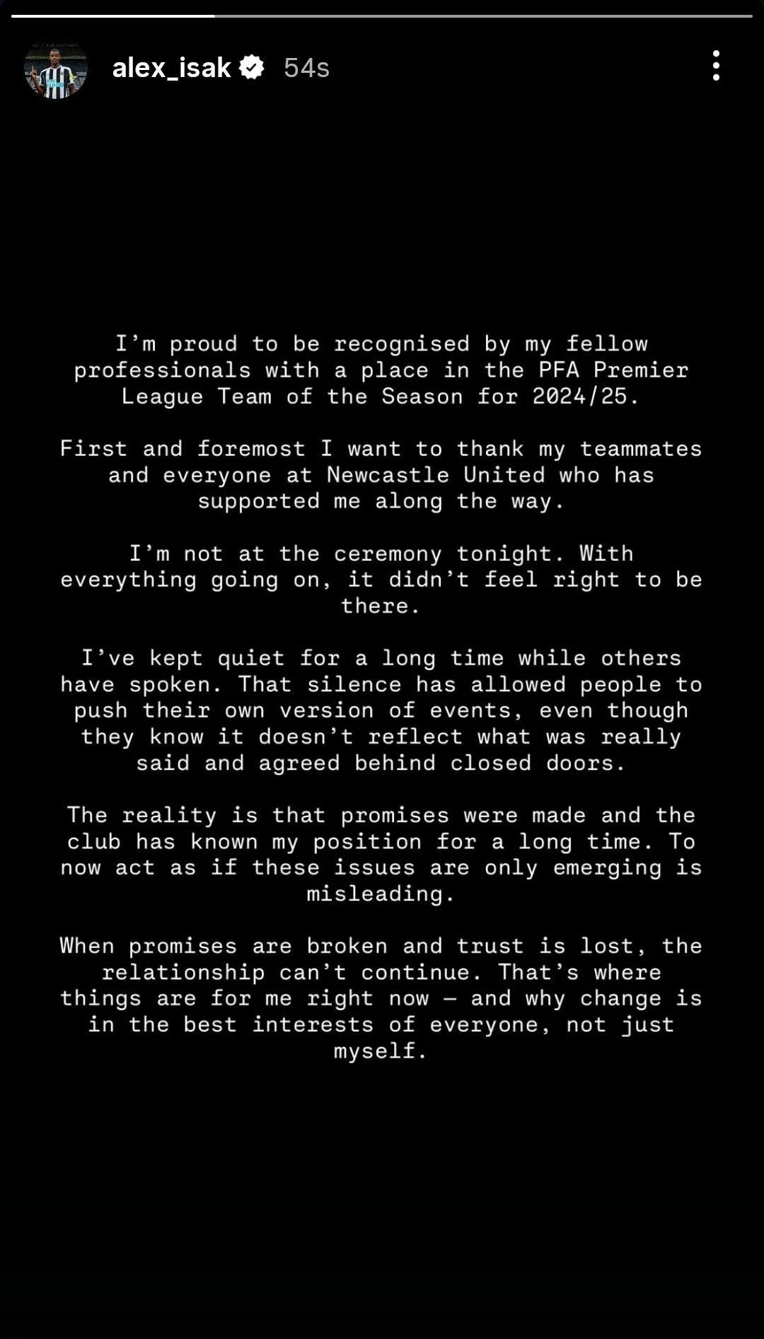 今天凌晨,原来伊萨克受邀干预在曼彻斯特举行的英格兰处事球职工会(PFA)年度授奖庆典。但他最终莫得现身,还在酬酢媒体发表了一份对于他和纽卡矛盾的爆炸性的个东谈主声明。全文如下↓