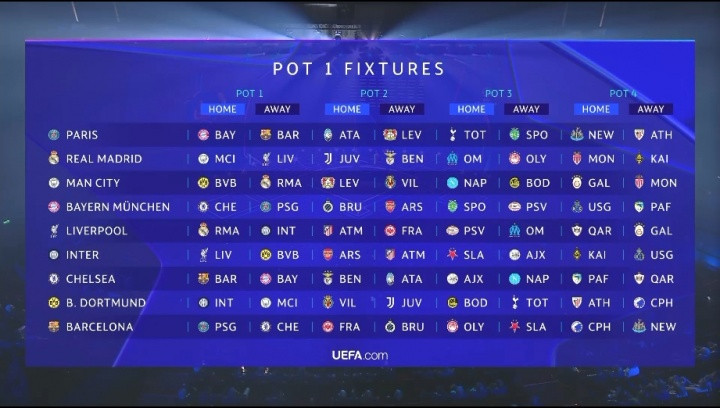 抽签遇到敌手:利物浦(主)、多特蒙德(客)、阿森纳(主)、马德里竞技(客)、布拉格斯拉维亚(主)、阿贾克斯(客)、阿拉木图凯拉特(主)、圣吉罗斯(客)